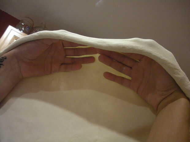 Hecho desde cero con masa casera de pizza es fantástica. Absolutamente delicioso. Casi pude comerlo todos los días de la semana. Sin embargo, llega un punto cuando estoy toda pizza hacia fuera y todavía tengo pasta de la pizza sobrante en la nevera.