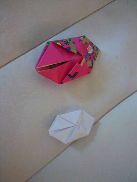 Doble dos globos origami, pero no inflar todavía. Si tienes problemas con el diagrama, seguir el enlace a su fuente de donde se puede ver también una animación.