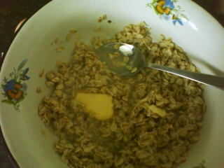 El agua hirviendo la mezcla con la avena y la mantequilla. Y dejar durante 10 minutos.