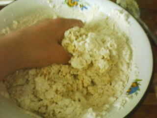 Empezar a mezclar la mezcla con las manos.