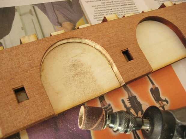 Si ha utilizado el método de soporte de gafas cortadas que sugerí durante el diseño, unir las piezas. Corté los agujeros para los soportes de pasador. Cuando pegué el estante para el sostenedor de cristal tenía las clavijas en lugar para asegurarse de que todo estaba alineado justo.
