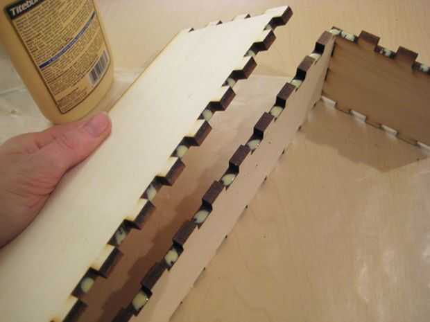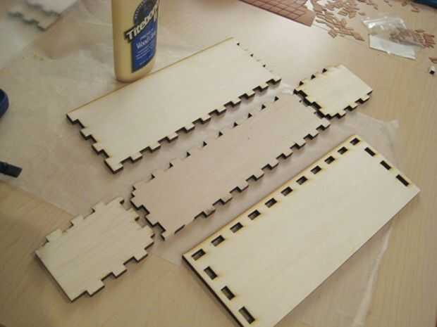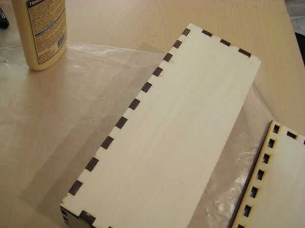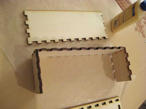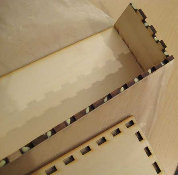 La gaveta en la parte inferior del lado derecho de la caja fue diseñada para que el frente del cajón era lo suficientemente grande para cubrir el armazón que sostiene el cajón. Por lo tanto las piezas de fondo y laterales de cajón deban ser menor que el frente del cajón. Diseñé el frente del cajón para mantener dedo puntos de conexión común ligeramente dentro del borde del cajón.