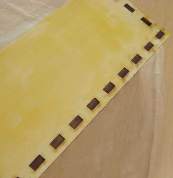 Coloque puntos de pegamento en los valles de cada lengüeta común.