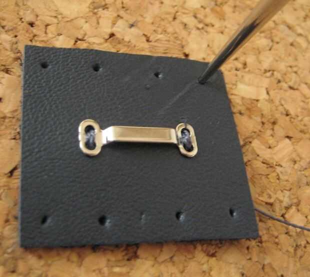 Para los tirantes que sujetan mis gafas en el lugar, envuelto los tacos en cuero y une el gancho a ese pedazo de cuero.