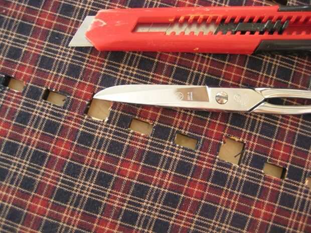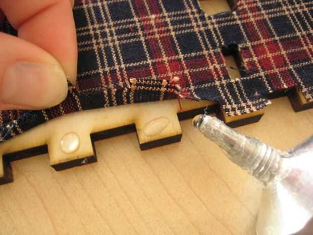 Decidí cubrir la espalda con la misma tela que solía volver a la línea la maleta. Añadí un poco de pegamento alrededor de cada uno de los puntos conjunto de dedo para estantes y coloca el conjunto de la tela en su lugar. Una vez que el pegamento se seca fui a través y cortar a la tela de los orificios por lo que puedo hacer mis estanterías usando una cuchilla de borde recto y las tijeras con un punto agudo. También a había cortado al tejido de las articulaciones de los dedos alrededor de los bordes que se unen con el lado. Después de hacer la prueba de una pareja se adapta y añadir los laterales en espacio adecuado que se hizo evidente que necesitaba para pegar a la tela a lo largo de los bordes así o que empujados en posiciones extrañas durante la construcción final.