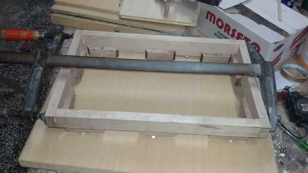 Puse cola para madera y apretar las abrazaderas. Asegúrese de hacerlo en una superficie recta, para evitar cualquier mal