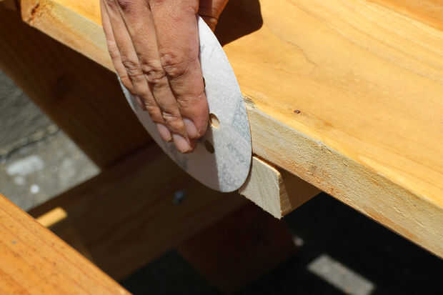 Después de cortar la cuña bordes se lija para eliminar rebabas y astillas.