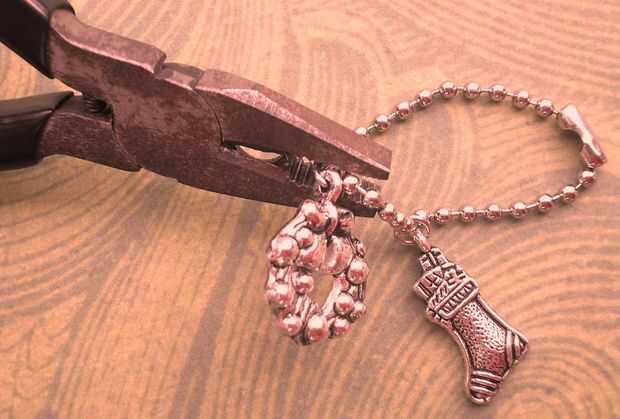 Uso saltar anillos para unir encantos a una cadena y seguro alrededor de la manija