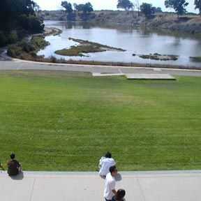 Organizar las bandejas como bases de un diamante de béisbol, esto ayuda a tener una pendiente cuesta abajo, con el plato de home en la parte inferior, segunda base en la parte superior. El césped detrás de la UCSB UCen es perfecto para esto.