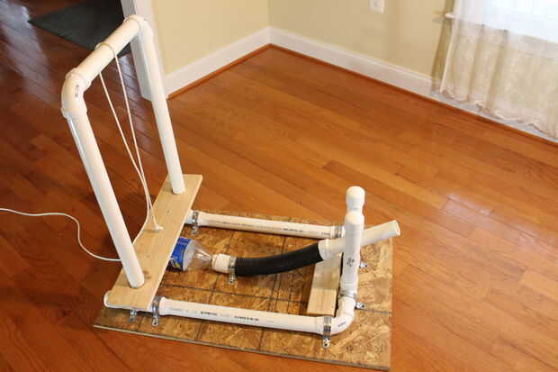 Este fue el plan de mi hija; así que tuve que resistir las ganas de hacerlo "mejor". Trato de convencerla para que se añadan algunas mejoras pero fracasaron (véase abajo). Así que todavía se aplica el viejo adagio (beso). Mi hija y su compañero está tomando datos ajustando la altura peso y ángulo de lanzamiento. Los resultados se publicarán después de la competición.