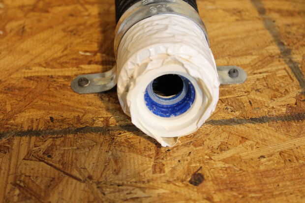La botella más probable es que tendrá que ser sustituido (bueno para ~ 100 hits). Puede utilizar cinta o prueba la función reemplazable que modificamos basada en seamster de instructable. Elegimos la opción reemplazable. Conecte el ensamble de la tapa de extremo en el otro extremo de la manguera con cinta adhesiva.