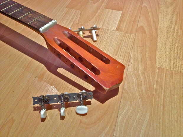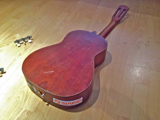 Primero quité las cadenas, entonces la vieja rota la máquina cabezas y clavijas de afinación.
