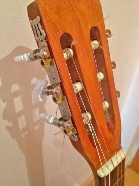 Puede comprar buen tuning nuevas clavijas para alrededor de £10 o alternativamente robar algunos de otra guitarra que ha quedado huérfanos. Robaron mina de mi fender clásico como he comprado nuevas clavijas de afinación para él.