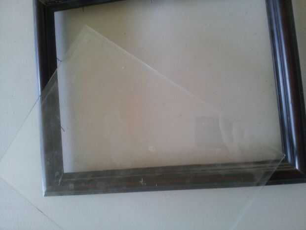 Desmontar tu viejo cuadro y marco. Límpielo. Luego la cinta imprimir su imagen sobre el vidrio. Simplemente trazar los detalles de la imagen con su pluma sharpie. No tiene que ser perfecto porque será pintura sobre él pronto pero trate de ser ordenado.