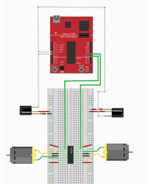Para gente que me preguntara por el diagrama esquemático se los adjunto, con todo el proyecto armado y esto es basicamente lo tiene armar ustedes, donde van los 2 sensores infra rojos los pueden cambiar por foto resistores como mencione no antes pues de la misma manera y para el código nos afectara. También en vez de agregar un launchpad puede agregar los opams y suministrar el voltaje por medio de una batería externa.