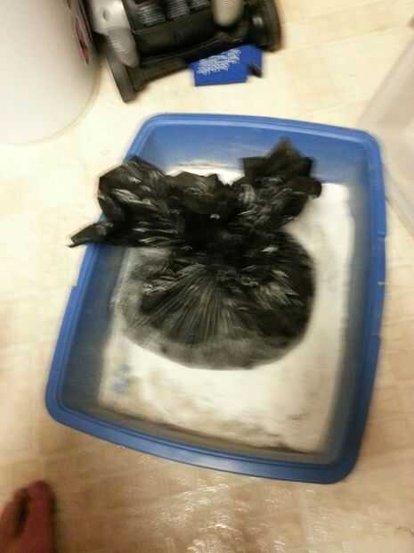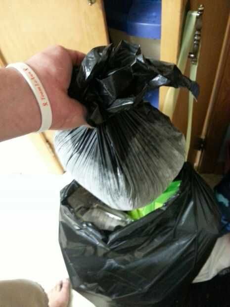 Remove lid. Quitar banda (que hará pasando un montón de simples bandas de goma en un círculo) doblar los bordes del revestimiento. Póngalo en la basura. ¡ SIMPLE!