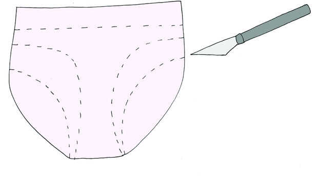 Con un cuchillo del exacto, corte perforaciones de unos cortes deseados de la ropa interior. Incluso se puede trazar de otra ropa interior tienes (aquellos más lindo).