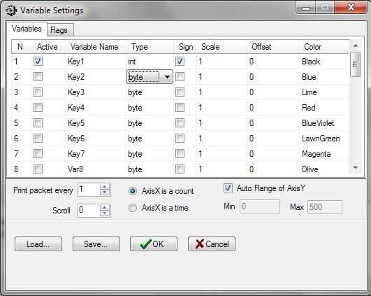 [Tabla -> configuración de variables] panel se ilustra en la imagen.