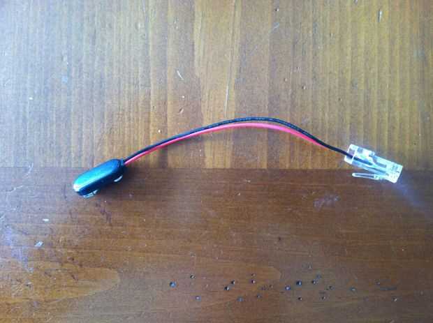 En el enchufe de pared puerto perforó el lado positivo del enchufe de la batería de 9 voltios para el verde y el blanco despojado y el naranja y el blanco desnudaron de puertos. El lado negativo fue unido a ambos el sólido verde sólido naranja lado y de la toma de corriente. De esta manera potencia se suministra a los grupos de alambre verde y naranja y se enciende allí correspondiente LED (esto se mostrará durante la prueba)