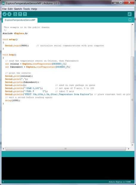 Trazar la temperatura con Arduino Esplora y MakerPlot (3 / 7 paso)