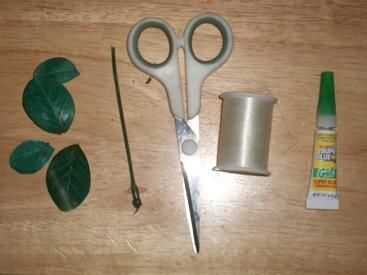 Cuatro pequeñas hojas falsas y alambre floral verde