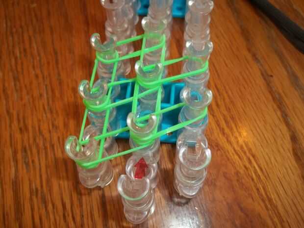 Colocar otra banda va diagonalmente a la derecha de la clavija media siguiente.