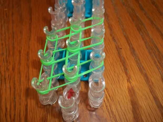 Coloque la última banda diagonal va a la derecha de la última clavija media.
