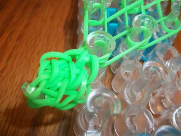 Coloque su hoja acabada en el lado izquierdo del telar más cercana a usted. Continuar como antes de la colocación. La hoja que apenas se colocó en los actos de telar como una banda de la tapa así que asegúrese de que la banda sea jalada hacia atrás! Pasos 14-19 pueden ayudar con el proceso de colocación, si usted necesita ayuda.