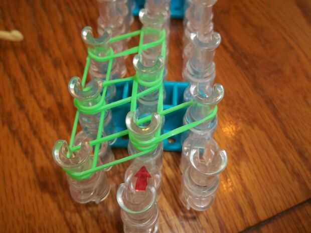 Colocar otra banda diagonal de la clavija central a la derecha.