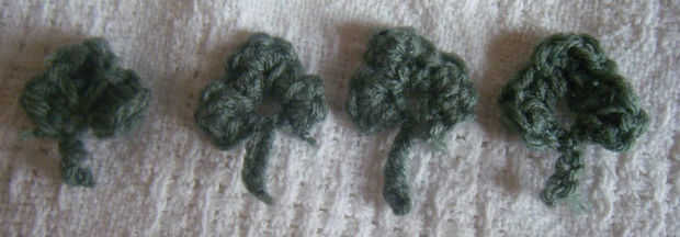 20 tréboles de ganchillo, luego hizo una cadena sc unos 3 pies de largo. Ató alrededor de la parte superior de mi gaita para mi varios conciertos día de San Patty (aunque bastante conseguido trenzado). También podría hacer camisa pins, llaveros, guirnaldas para los potes de flor, árboles, diademas... Y la lista continúa. Tal vez puede ser más original.
