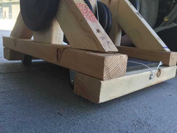 4) colocar ruedas en la parte inferior del paso 1) de madera, debe rodar fácilmente
