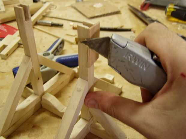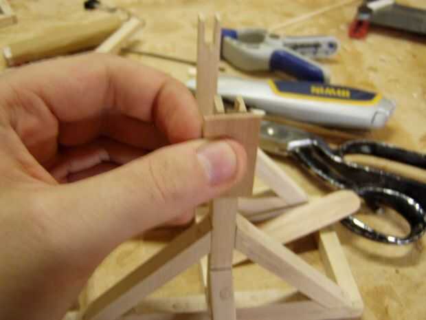 Una vez algo juntos, colgar el peso de la axel entre los brazos de su trebuchet.
