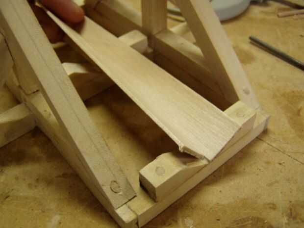 Luego adhiera dos palos más para los bloques de la rampa para hacer un canal para su carga. Si no haces los bloques, por lo menos pegue un par de palillos abajo de plano para que el proyectil no quedar atrapado en el marco durante el lanzamiento.
