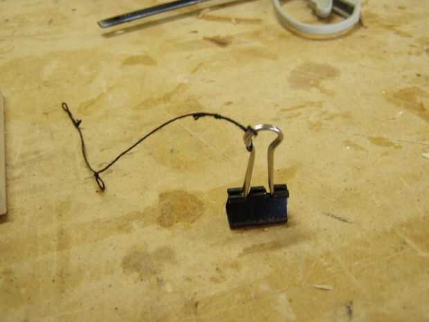 Por último, encontrar algo para tirar. No he encontrado un diseño para una cinta que funciona bien en este tamaño tan sólo vinculo un cable a lo que quiero de la tirada. Una buena longitud para empezar es sobre cuatro o más pulgadas. Experimente para encontrar lo que funciona mejor con lo que usted está tratando de lanzar.