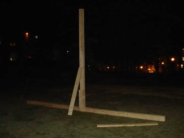 Con los soportes base y principal no hay madera para trabajar con el fin de semana y cerca de dos tercios de la manera hecho, decidí armar esta cosa. No hay aquí mucha instrucción, atencion solo ver cómo fue avanzando el proyecto. Los soportes diagonales que se pueden ver son temporales. Cosas bien atornillan entre sí y fue, en el conjunto, muy intimidante...