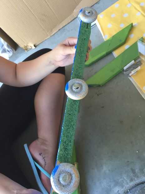 Una vez que tengas las ruedas añadir tres ruedas a cada lado y espacio de manera uniforme. Una vez que tengan un espaciado uniforme puede clávelos en la base pero no hasta el final. Deje un pequeño espacio para que pueden recurrir.