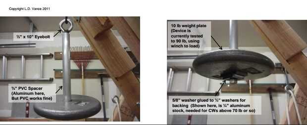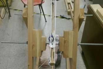 En cuanto al mecanismo CW (contrapeso), hay 3 partes. El peso que sostiene la parte, la cuerda colocar el CW al brazo y gravedad. Para construir el soporte CW, se refieren a la última foto. Calculo algo en mi cuenta, sin embargo el Sr. Vance había proporcionado ya un cuadro perfecto para él y sólo tuvo que usarlo. Corte de 9" de kevlar o cuerda probado para su trebuchet de peso. Lazo uniformemente con el CW en el punto medio.