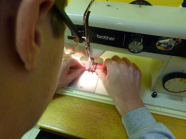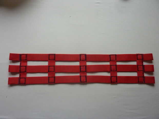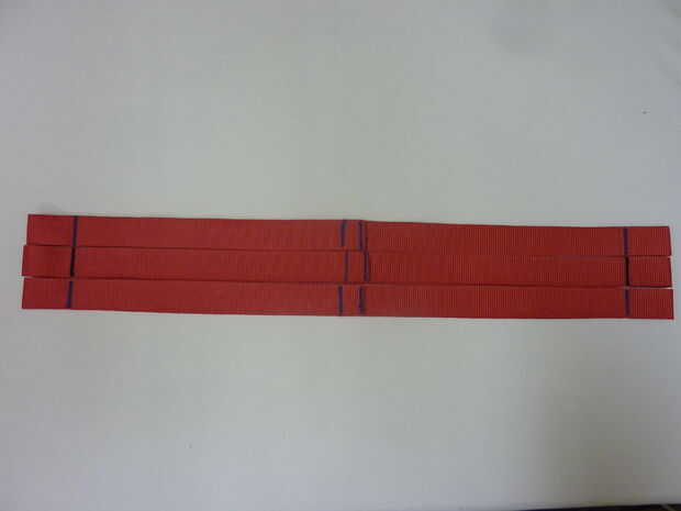 1. en primer lugar cosemos la longitud del asiento. Tomar las tres correas de 1, 30m y tomar cada extremo de una correa y doblarlas a la mitad, luego coser los extremos en el medio.
