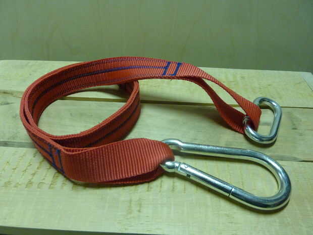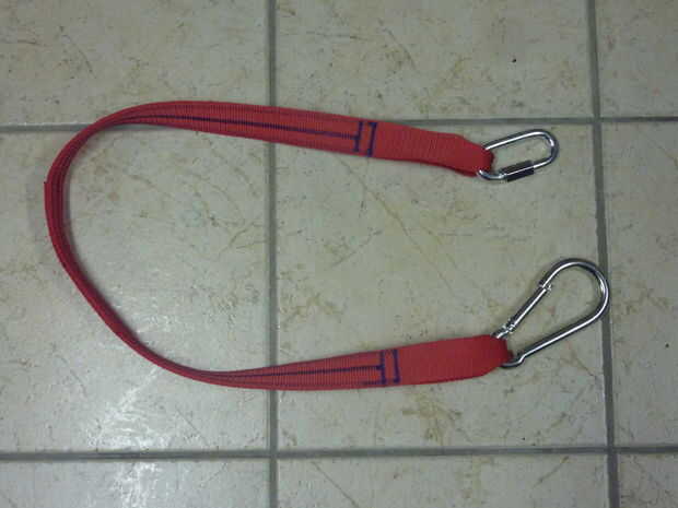 Tomar las dos cintas de 2m de largo y doblar ambos extremos a la mitad y coserlos. Ahora coser 10cm de ambos extremos para hacer los lazos donde vendrán los anillos de metal. Reforzar con suturas adicionales en los bordes.