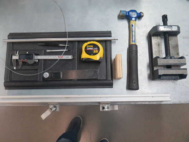 Ahora estoy listo para un prototipo a escala reflejando mecánicos y materiales reales. He procedente del tubo de aluminio de escala adecuada y capturaron todas las ubicaciones de los orificios para el modelo. He trazado todas las herramientas necesarias en la imagen adjunta. El siguiente proceso es una buena manera de crear un modelo de tensegridad en de modo que sus trayectorias cable salen de cada puntal en el ángulo correcto. Debe usted ser a partir de un modelo de ordenador y son capaces de medir los agujeros de ángulo radial esto es un buen punto de partida: