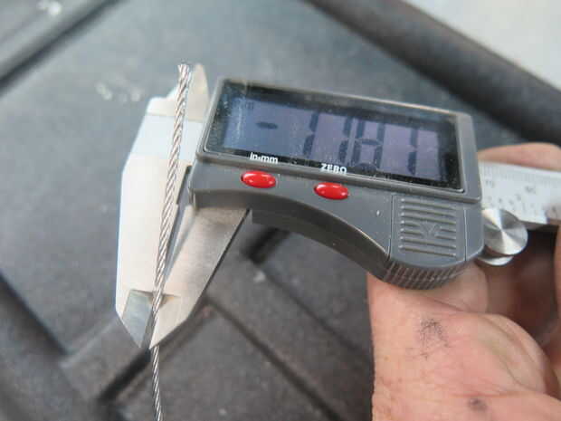 - Con las pinzas de medir el tamaño del cable y elija un tamaño de broca de taladro que será suficientemente grande.