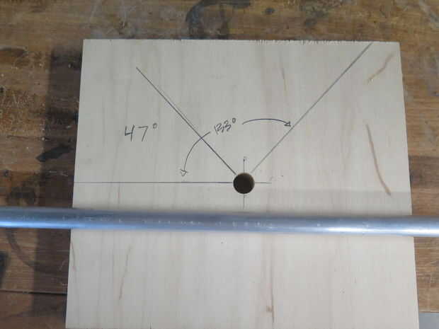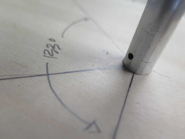 - Colocar los ángulos de ubicación del agujero radial en un tablero con un agujero en el diámetro de mi struts en el origen del ángulo.