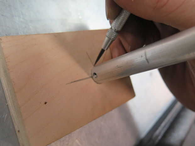 - Con un punto agudo escriba marca una cruz en cada una de las ubicaciones de los orificios utilizando la plantilla de madera.