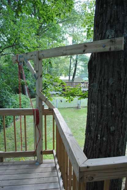 «Hombre de paracaídas» obtiene un sistema de poleas para subir y lo alto en el aire.Solía hacer el juguete de "hombre del paracaídas" mucho cuando yo era un niño. Estaba visitando Danielle y Rhett. Él se inspiró para hacer un sistema de polea pa