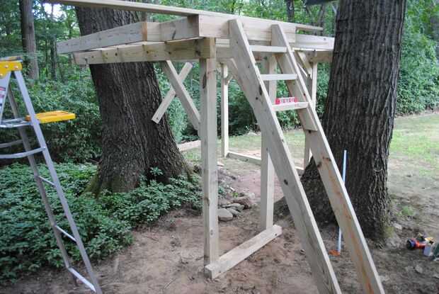 Construyó las escaleras con largueros de 2 x 6 (carriles) y peldaños (pasos) y 3 tornillos de la cubierta. Tacos de soporte de 1 x 4 usado clavados en los carriles para soporte adicional.