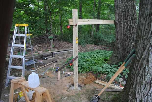 Instalación de poste de 4 x 4.  No es de extrañar que golpee las raíces cerca de 18 en, pero lo instalé en Quickcrete de todos modos.