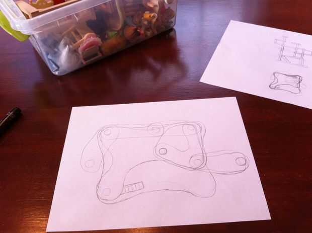 En primer lugar, sacó una pequeña imagen en miniatura de cómo quería que las piezas encajan, entonces creé una perspectiva aérea donde forma de cada capa. Puesto que era sólo un boceto, no era del mismo tamaño, pero me dio una idea de cómo quería todo a trabajar juntos.