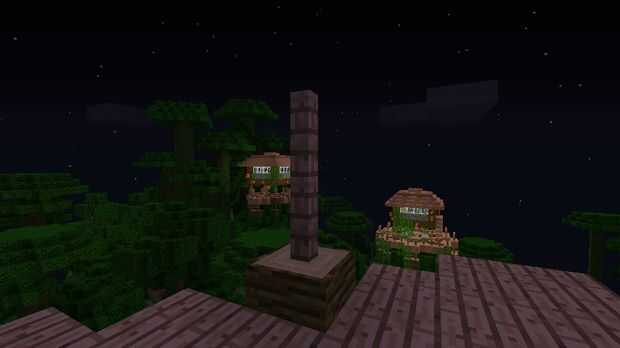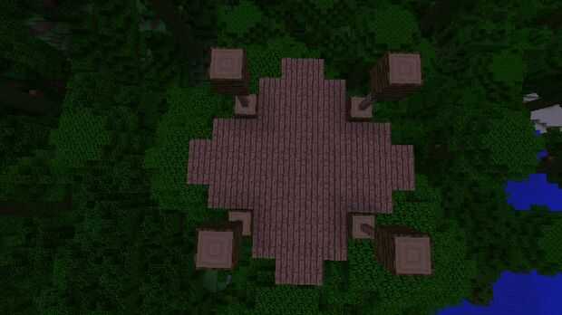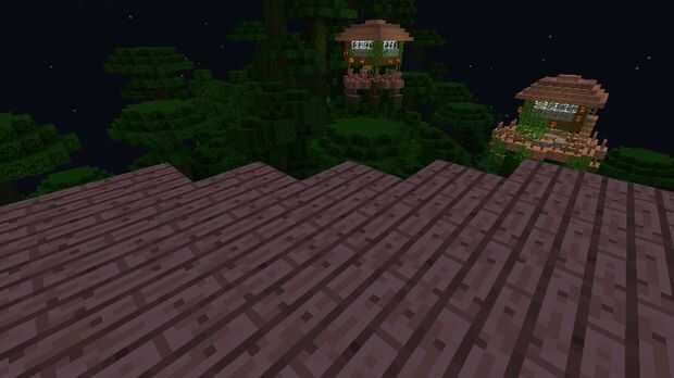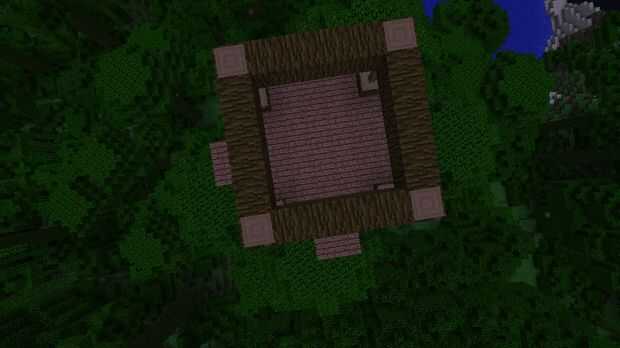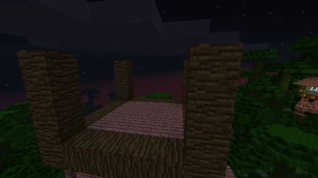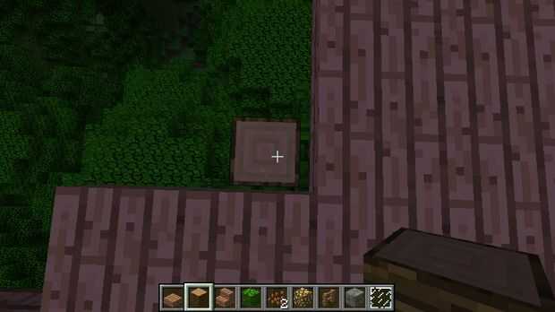 2 cuadras abajo, encima de hojas, colocar madera de selva, luego una valla, y luego madera selva otra vez.
