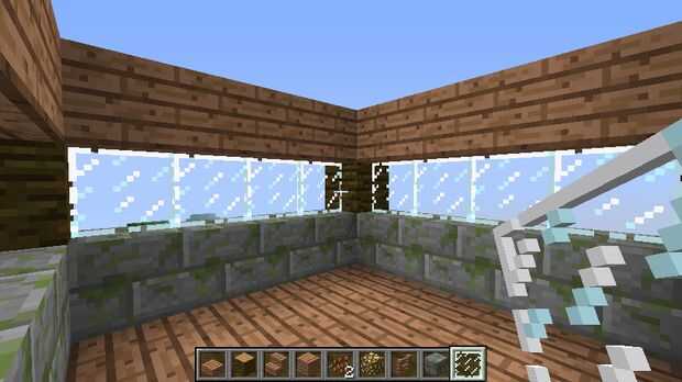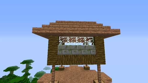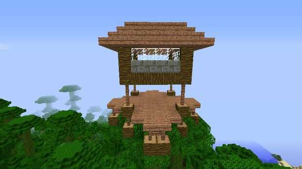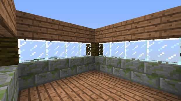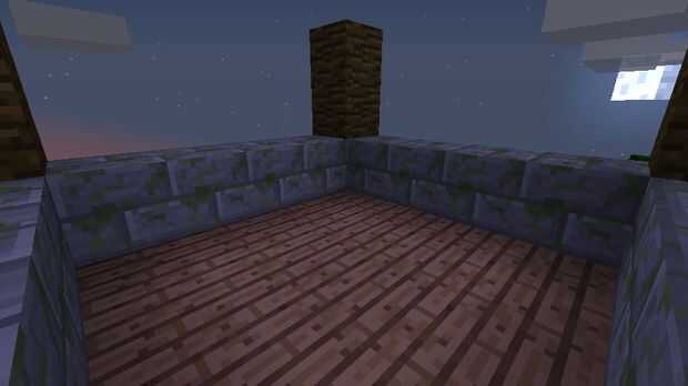 De cada uno de la madera estructura de "pilares" en toda con piedra de musgo. Que añadir cristales y por encima añadir tablones de madera.