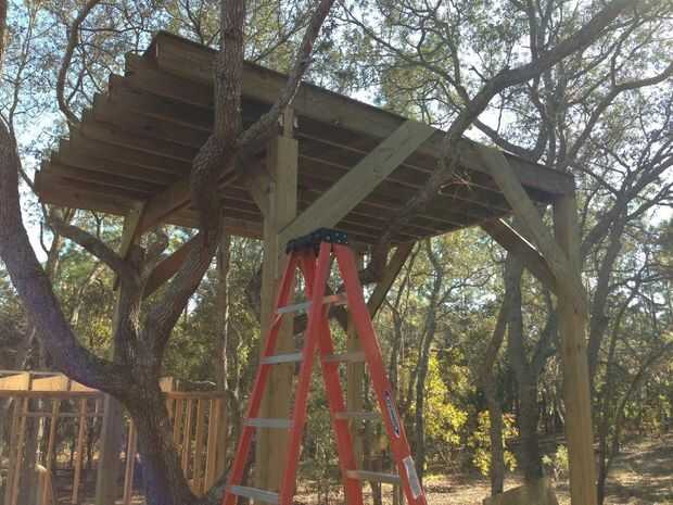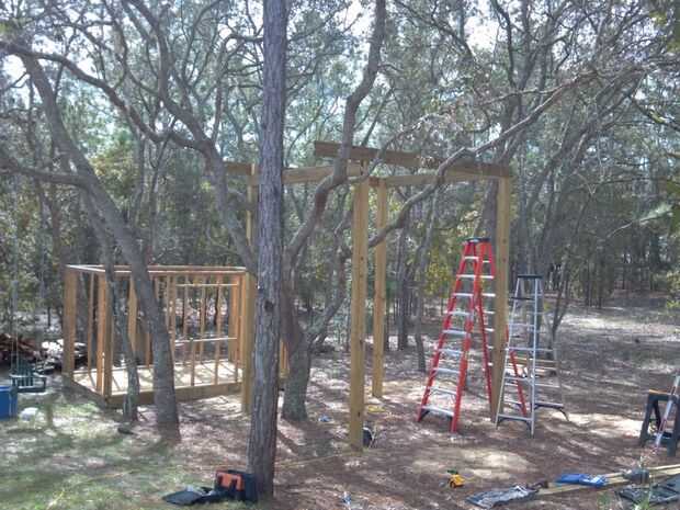 Nos enmarca estos edificios como haría cualquier casa... todo al código. Nos "edificara" en algunas zonas como las vigas del piso (que son vigas de 2 x 8, 1' en el centro) porque quería seguridad, seguridad y sólo quería que todo sea realmente sólida. El tamaño de tu árbol dictará el mejor material a utilizar para su proyecto. Verter pies de página y marcos cada uno pueden ser su propio Instructable así que esto es sólo una idea general de los pasos a realizar y completar un proyecto como este.